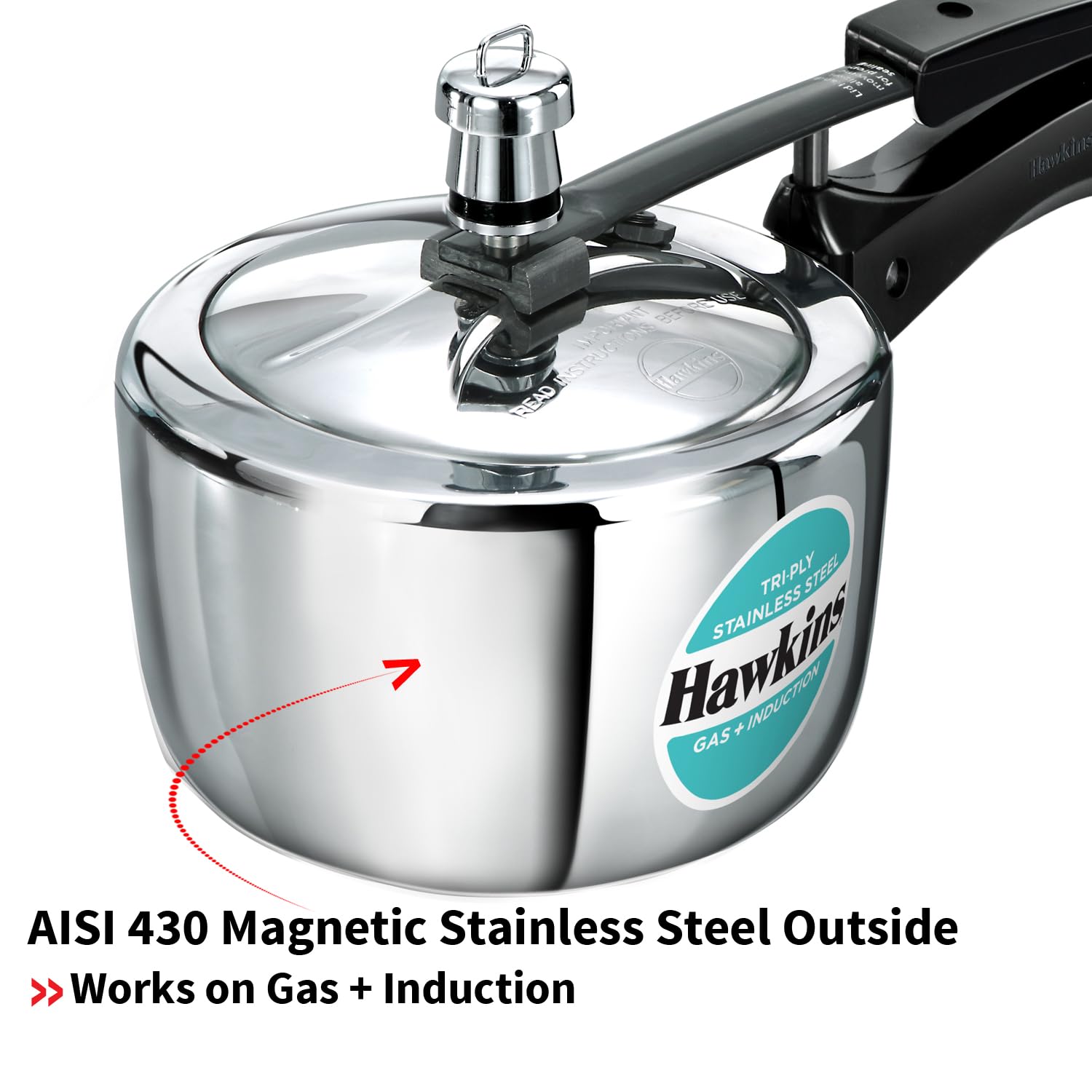 Hawkins 1.5 Litre Triply Stainless Steel Pressure Cooker, Inner Lid Induction Baby Cooker, Silver (HSST15)