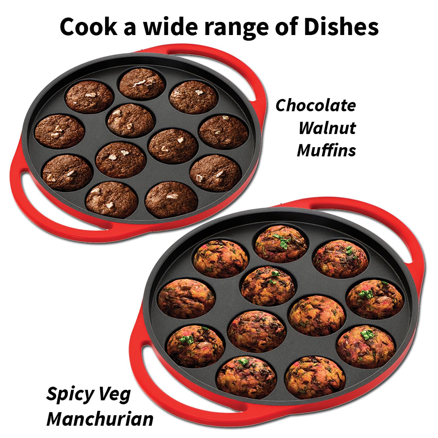 Hawkins 24 cm Appe Pan, Non Stick Paniyaram/Paniyarakkal/Kuzhi/Paniyaram/Ponganalu/Litti Pan with Glass Lid, Aluminum handle, 12 Cups, Red (NAPE24G) quantity