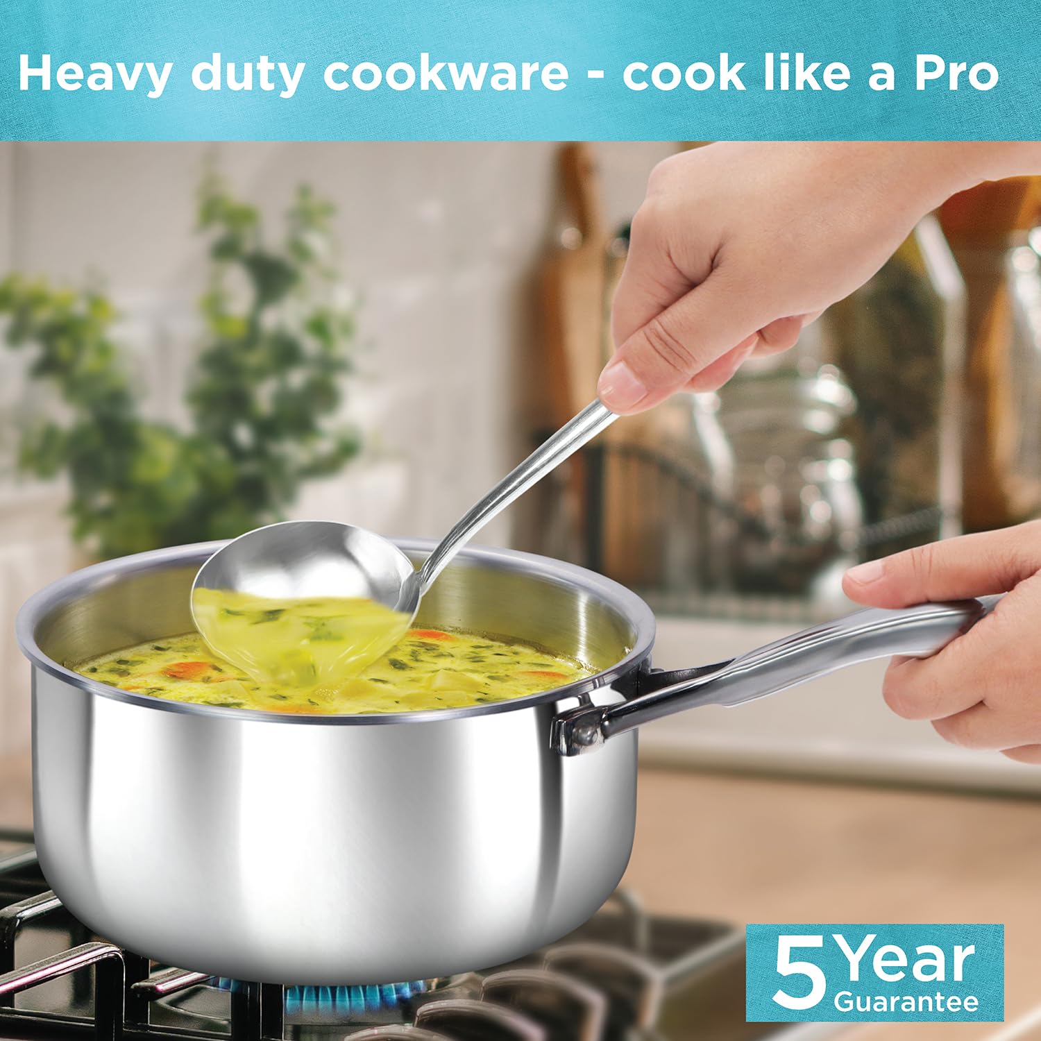 Hawkins Pro 2.5 Litre Sauce Pan, Triply Sauce Pan with Stainless Steel Handle and Stainless Steel Lid, Silver (PSSP25S)