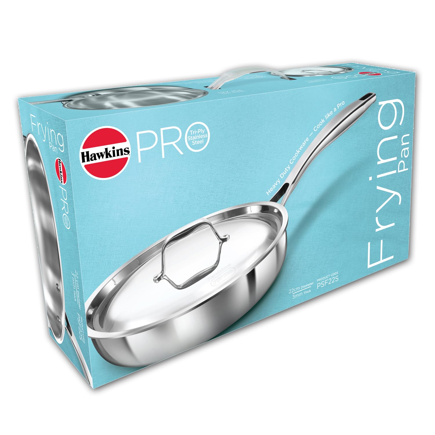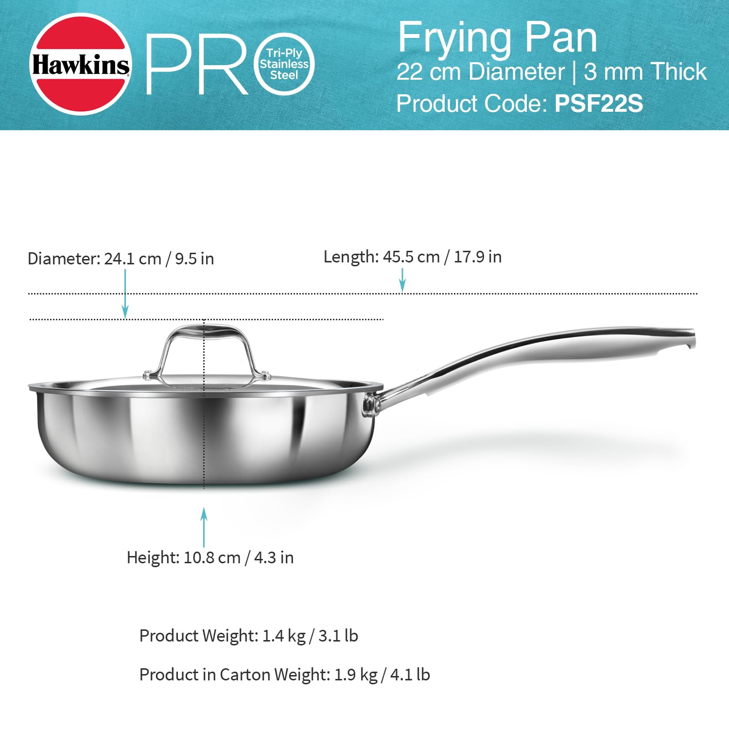 Hawkins Pro 22 cm Frying Pan, Triply Stainless Steel Fry Pan with Stainless Steel Handle and Stainless Steel Lid, Silver (PSF22S)